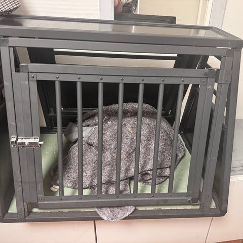 Svensk kvalitet. Alftaburen hundebur i sort metal til montering i bilens bagagerum. Buret har gitterkonstruktion med låge foran og drejelås. Egnet til transport og sikker opbevaring af hund under kørsel. Sidder lige nu i en Mercedes EQB, men passer også til Volvo V90. Bredde 55 cm. Passer til hund af racerne i størrelse som labrador