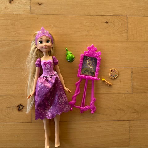 Rapunzel dukke i god stand sælges. Inkl. tiara og spejl. Nypris 399,-.