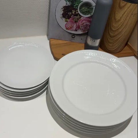 Royal Copenhagen tallerkener i hvidt porcelæn. Klassiske, runde middagstallerkener velegnede til daglig brug eller opdækning ved særlige lejligheder. Neutral hvid farve, der passer sammen med andet stel fra Royal Copenhagen og lignende service. Egner sig til servering af hovedretter eller som alsidige serveringstallerkener i køkken og spisestue.