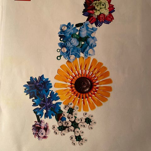 LEGO Botanical Collection Wildflower Bouquet byggesæt. Sættet forestiller en buket vilde blomster opbygget af LEGO klodser i forskellige farver og former. Modellen er en del af LEGO Botanical Collection-serien, der fokuserer på blomster- og planteinspirerede byggesæt til udstilling. Velegnet som kreativt byggeprojekt og som dekorativ genstand i hjemmet. Sættet består af flere enkelte blomsterstilke, der kan arrangeres i en vase efter eget ønske.
