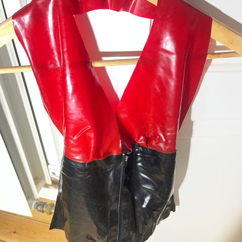 Sort lak bukser med lynlås foran. Bukserne har tætsiddende pasform og fuld benlængde. Velegnet som modebukser til hverdagsbrug eller festlige lejligheder.brugt. 150,-