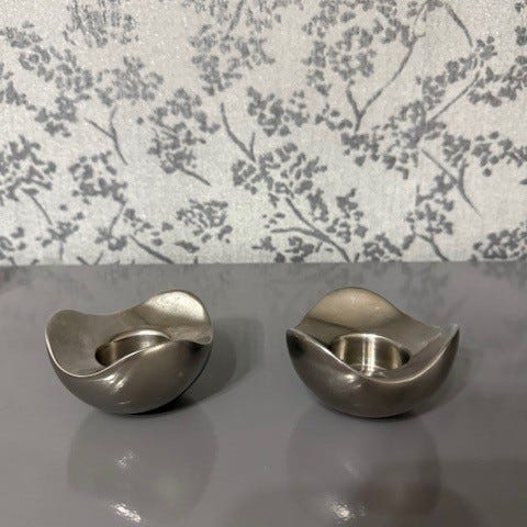 Georg Jensen Bloom fyrfadsstager i rustfrit stål. Sættet består af to fyrfadsstager med organisk, blødt buet form og blankpoleret overflade. Stagerne er beregnet til almindelige fyrfadslys og kan anvendes som borddekoration eller stemningslys i hjemmet. Leveres i original æske med tilhørende folder.