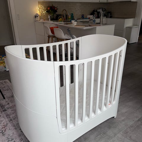 Leander tremmeseng i hvid. Klassisk tremmeseng med afrundede hjørner og lamelbund. Sengen er i rigtig god stand, med ingen store synlige ridser - der er en smule på siden (se billede) og i bunden af sengen (kan ikke ses med madras).
