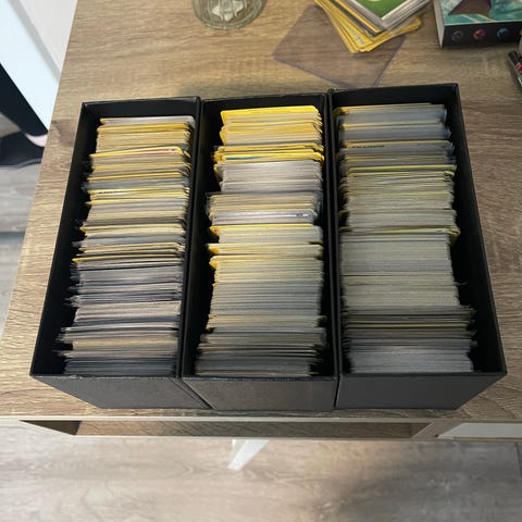 440 + stk Pokémon samlekort blandet lot. Forskellige korttyper og motiver, herunder energi- og pokémonkort. Kortene ses både i mappe og løst i kasse. Egnet til samling, bytning eller spil.