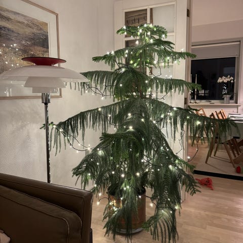 Stuegran ca 3.50 meter høj, med selvvandingspotte sælges, da der ikke er plads til den mere