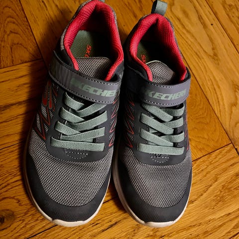 Skechers sneakers til pige i str. 36. Skoene er pink og har snørelukning. Overdelen er i syntetisk materiale med teksturdetaljer, og sålen er i gummi med synlig luftdetalje i hælen. Egnet som hverdagssko eller fritidssko til piger, der bruger str. 36. Kun brugt få gange, hvorfor de er næsten som nye.
