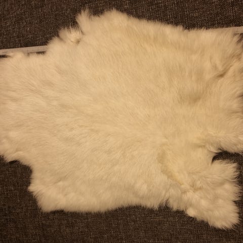 Færdiggarvet kaninskind klar til at bruge i dit næste syprojekt eller for sig selv i indretningen. Skindene er garvet på gaveri og dejlig bløde. De fælder ikke.