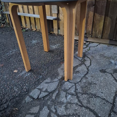 Lille rundt spisebord. Diameter 100 cm. Inklusiv 5 stole. Ingen skader eller mærker. Bord 300 kr. stole 300 kr. samlet pris 500 kr.