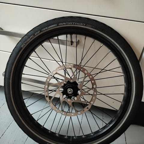 20” front wheel for a ladcykel or cargobike. Thru axle discbrake.