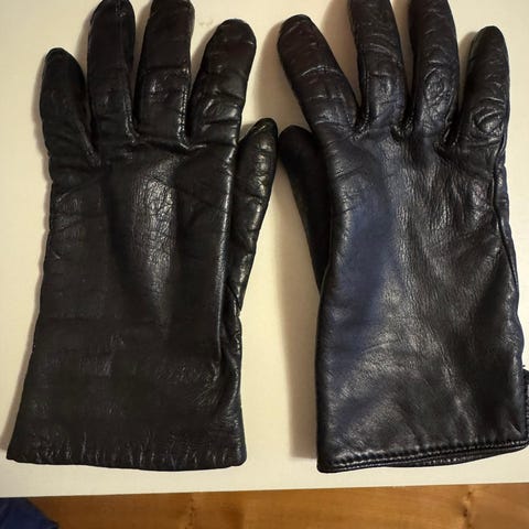 Skindhandsker. Herremodel. Ca. str. 8/9. De er brugte med uden huller, og syninger er fine. Sorte. Real Pigs. Med foer 80% uld og 20% acryl.