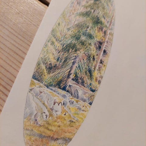 Brevpapir fra 80'erne med en sød lille grævlinge bamse og edderkop.
