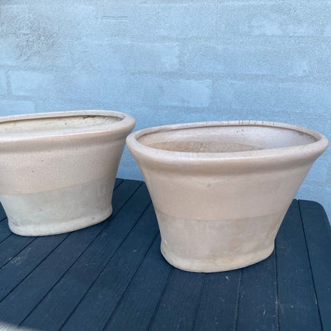 Den højre potte er ny og har aldrig været i brug. Den venstre fås gratis ovenikøbet.
