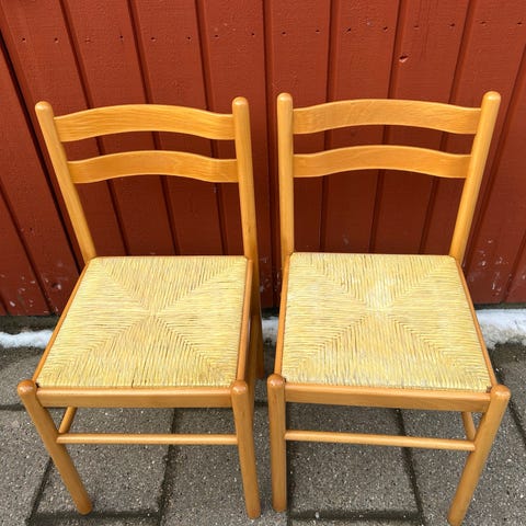 Vi har selv malet stolen hvid, og på armlænene er der 2-3 steder, hvor den oprindelige farve (mørkebrun) stadig kan ses. Ellers er den i super stand. Meget stabil og betrukket med nyt stof. Sælges på grund af flytning. Hvis du har spørgsmål, er du velkommen til at skrive. Venlig hilsen
