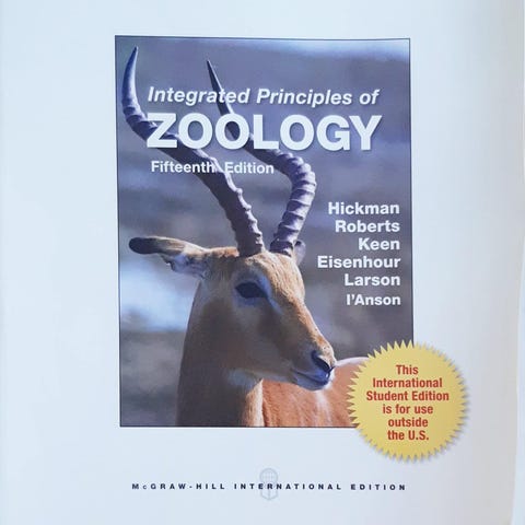 Sælger Integrated Principles of Zoology (19. udgave), som bruges på biologistudiet og beslægtede uddannelser. Bogen er i næsten som ny stand, meget lidt brugt og uden overstregninger eller noter.