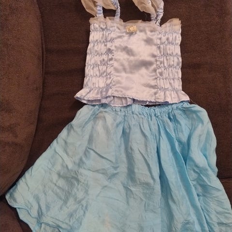Pæn og velholdt Askepot kjole fra Disney sælges. Str 3-5 år. Lidt slid fra velcro som ses på billede 3 men ellers en virkelig flot kjole.