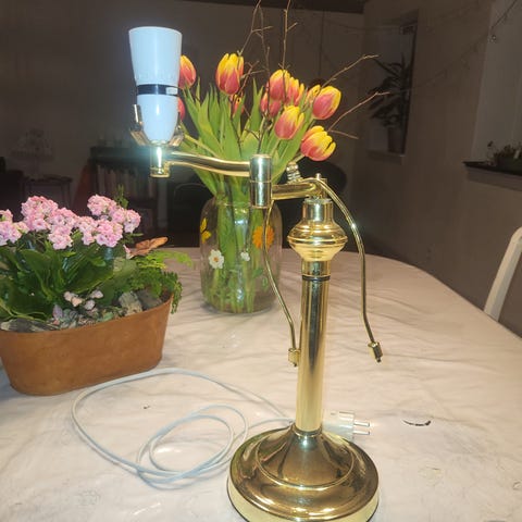 Så smuk gammel olielampe lavet om det strøm. Virker! Skal have en anden skræm.