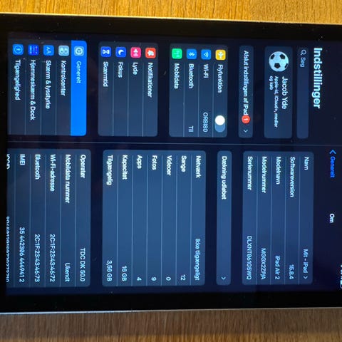 Ipad Air 2 Wi-Fi og 4G 64 Gb. Kan tage sim kort. Software version : IpadOs 15.8.5