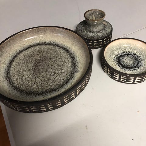 Fad kvadratisk brun med gul dekoration