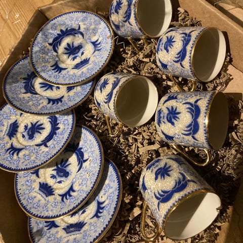 5 stk antik kopper med underkopper, Fra 1920. SheFoo Arabia Finland.