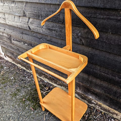 Flot stand. Let patineret i form af lak er slidt sine steder. Man kan give den olie hvis man vil give den mere shine men står også flot rustik sæig enkel som nu.