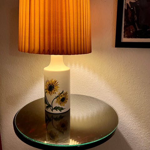 Håndmalet hånddrejet vintage Flowerpower Blå Blomst keramiklampe fra ca. 70-80'erne, næsten semiantik.