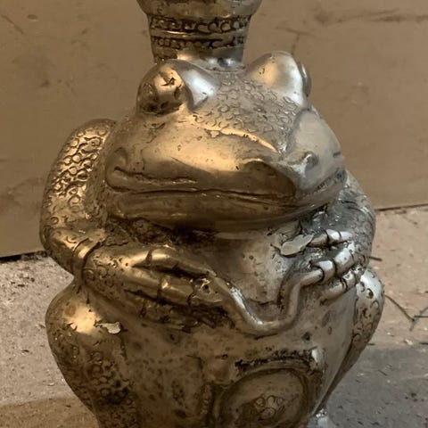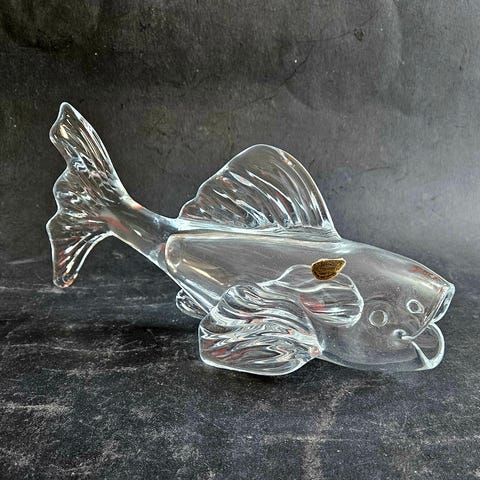 Stor dekorativ fisk i metal, farve creme. Længde 50 cm, højde 22 cm. I fin stand, mangler dog den en 'sidefinne' som vist på sidste billede, dog stadig super fin. Kan sendes på købers regning.