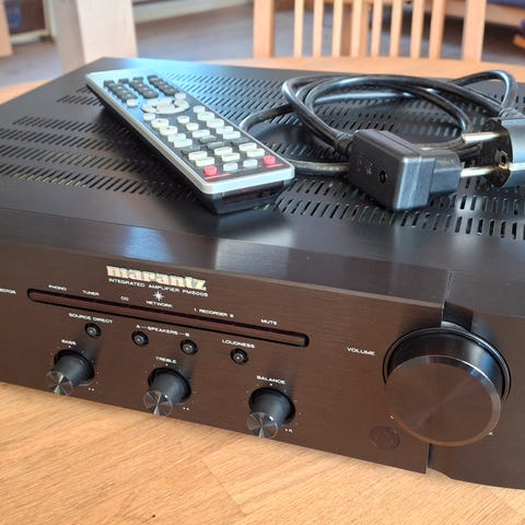 Forstærkeren er i god stand, der er en ridse ovenpå (se billede), men derudover står den flot alderen taget i betragtning.