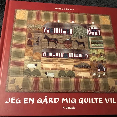 Klematis "Jeg en gård mig quilte vil" patchworkbog af Dorthe Jollmann. Bogen indeholder mønstre og ideer til patchwork og quiltning med landlige motiver, blandt andet gårdscener, dyr og huse. Velegnet som inspirationsbog til syning og quiltprojekter til hjemmet, såsom dækkeservietter, løbere og andre tekstilarbejder.