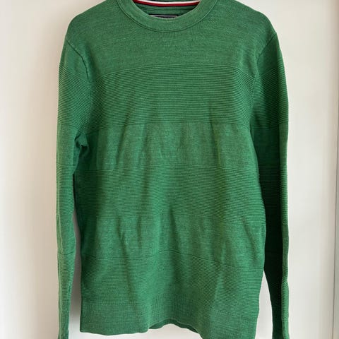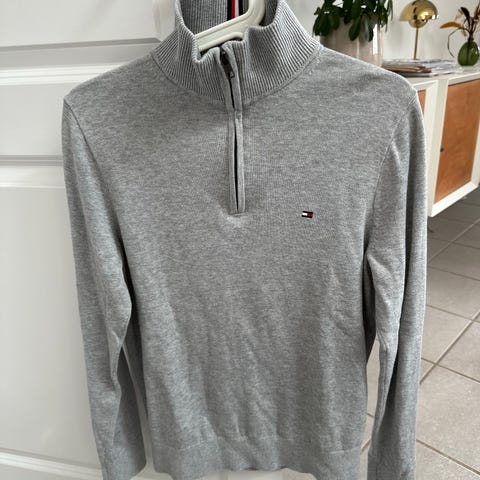 Tommy Hilfiger striktrøje til mænd i størrelse S. Trøjen er grå og fremstillet i uld. Den har ribkant ved ærmer og bund samt krave med knaplukning. Velegnet som varm overdel til hverdagsbrug eller over en skjorte. Vask og pleje efter anvisninger på mærket.