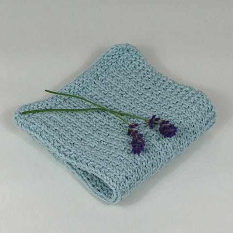 Håndlavet strikket klud af 100% bomuld i en lys agaveblå. Et miljøvenligt valg til både rengøring og badet - genanvendelig og ingen mikroplastik.