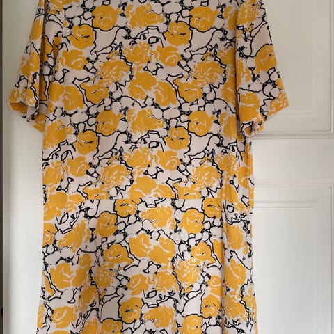 Hvid/blå Samsøe & Samsøe kjole, helforet, elastik i taljen, lommer i sidesøm, åben i ryggen (den hvide overdel lukkes med hægte ved halskanten.