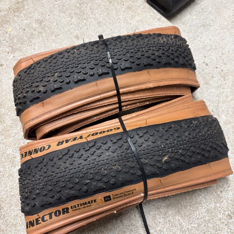 Har været opsat tubeless. Kørt ca. 2-300 km., ser næsten ubrugte ud.