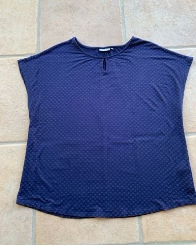 Fransa bluse til kvinder i størrelse XL. Blusen er blå og fremstillet i viskose. Den har 3/4-lange ærmer med let rynkeeffekt ved ærmekanten og en løs pasform. Udskæringen er v-udskæring uden krave. Egnet til hverdagsbrug og kan kombineres med både bukser og nederdel.