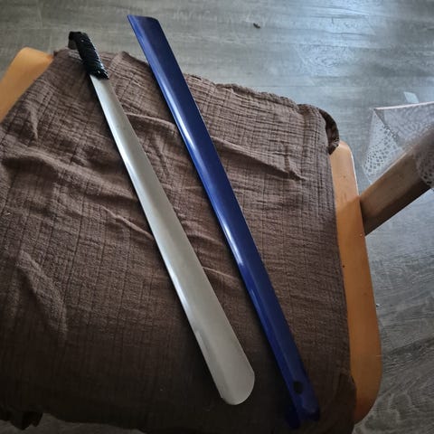 Sælger et gammelt og dekorativt skohorn i solid kvalitet.