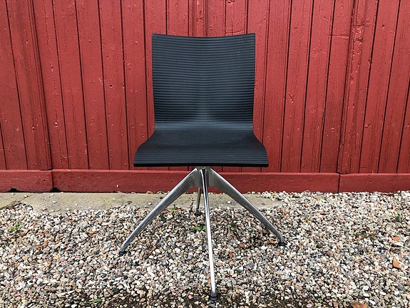 Stole model Skudo af sort fineret ask med ryg og sæde beklædt med grå velour med medestol af forkromet stål.