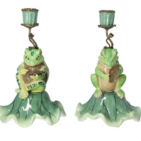 Kombinationen af blankt sort porcelæn og varmt bronze giver et stateligt, tidløst udtryk, der passer særdeles godt både til et klassisk engelsk interiør og til et stilfuldt moderne eller eklektisk interiør. På grund af deres størrelse og rige detaljer er disse lysestager virkelig øjenfangere.