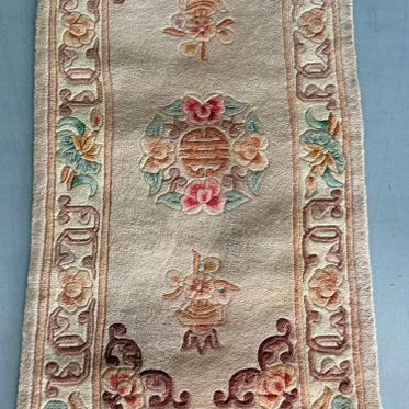 Oprindelse Kina, håndvævet tæppe fra det 21. århundrede, flerfarvet uld på bomuld, dimensioner 334 × 240 cm, i god generel stand med brugsspor. Klik på den blå "gå til varen" knap, for at købe eller byde på denne vare. Den samlede pris vil blive vist inden du afgiver dit bud.
