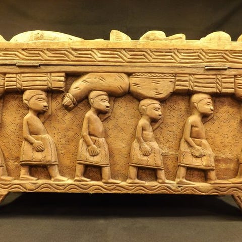 Urate ritualboks fra Lagawe, Ifugao, i træ, mål 28 × 15 × 10 cm, vægt 1,2 kg, i god stand med en smuk patineret overflade. Klik på den blå "gå til varen" knap, for at købe eller byde på denne vare. Den samlede pris vil blive vist inden du afgiver dit bud.