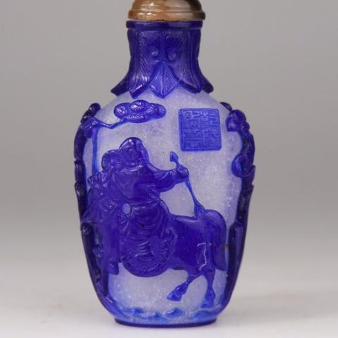 Snuffflaske i agat, Qing-dynastiet (1644–1911), anslået periode 1850–1900, mål 7 × 5 × 2 cm, i god stand med mindre aldersmærker. Klik på den blå "gå til varen" knap, for at købe eller byde på denne vare. Den samlede pris vil blive vist inden du afgiver dit bud.