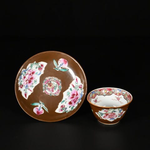 Porcelænsbæger med capucin glasur og interiør dekoreret i Famille Rose, Kina, Qianlong-perioden (1736–1795), mål: 6,7 cm i højden og 7,2 cm i diameter, i fremragende stand med få små brugsridser. Klik på den blå "gå til varen" knap, for at købe eller byde på denne vare. Den samlede pris vil blive vist inden du afgiver dit bud.