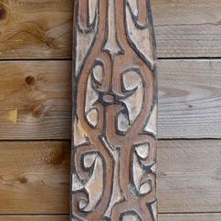 Asmat pedeltop fra Amenamkai, Papua Ny Guinea, midten af det 20. århundrede, træ, 80 cm høj, 5 cm bred, 2 cm dyb, i fremragende stand, fra privat samling og uden stand. Klik på den blå "gå til varen" knap, for at købe eller byde på denne vare. Den samlede pris vil blive vist inden du afgiver dit bud.