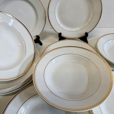 Ægte LIMOGES eksklusivt porcelænsfirma P.L. i fransk porcelæn, gammelt service sæt, detaljeret gammelt mønster parisiske stil og tidsalder Art Déco med blomstermotiv og kurve med blomster i levende nuancer. Med sit dobbelte mærke fra deres luksusudvalg på bagsiden LIMOGES- UNIQUE i fint porcelæn, skinnende på en ultrahvid baggrund, fremhæver det det detaljerede parisiske blomsterdesign. Kurve med blomster og buketter i intense nuancer. Alle tallerkener er mærket med deres ægthedsmærker; fremhæver mærket. -- UDEN SKADER.