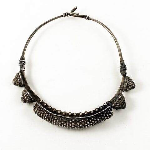 Det tredje amulettvedhæng er fra Siwa-oasen, og det bruges fastgjort til sløret. Sølv med glasperler.