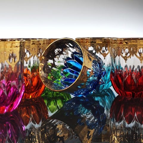 Drikke service (6) - 24 kt guld - Håndmalet guldglas