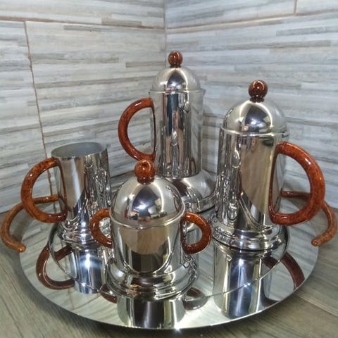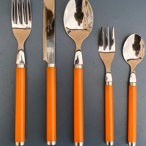 Ekstremt sjældent og enestående sæt bestik med 75 dele, produceret af den historiske italienske manufaktur Prandelli, der er synonym med pålidelighed, robusthed og overlegen kvalitet inden for bestik i det tyvende århundrede.