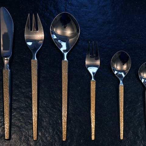 Sælger et omfattende bestik-konvolut med i alt 242 dele. Samlingen består af en alsidig blanding af høj kvalitet 18/10 rustfrit stål og forskellige sølvbelagte enkeltstykker/sæt