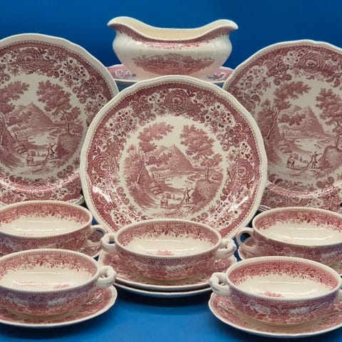 Superb porcelænsservicet signeret Villeroy & Boch, fra den prestigefyldte Burgenland Bleu-kollektion. Denne ikoniske kollektion tiltaler med sine finely detaljerede landskabsscener og delikate blomstermotiver, karakteristika for husets raffinement og håndværk.