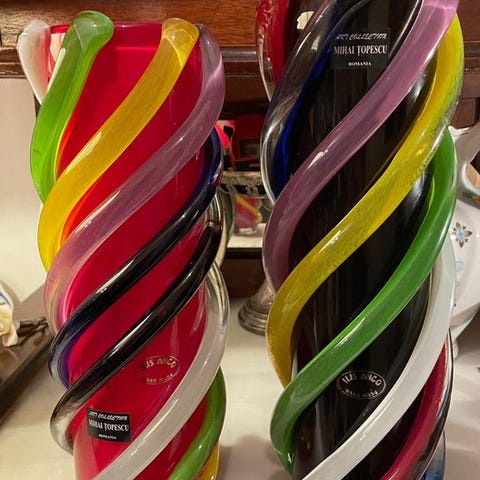Cubistisk Art Deco-glasvase signeret af Anatole Riecke.