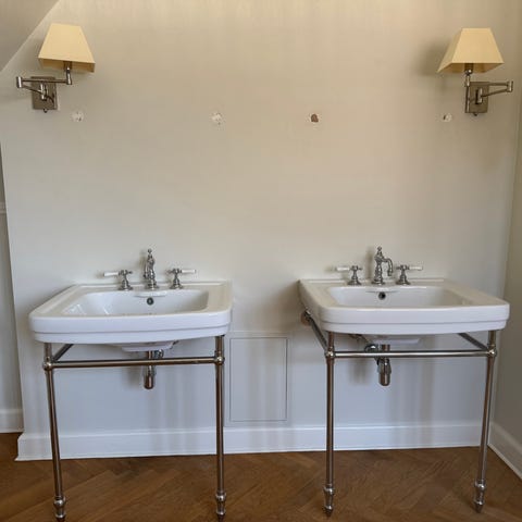 Konstruktionen er i meget god stand, men mangler vaskeskål og kande.