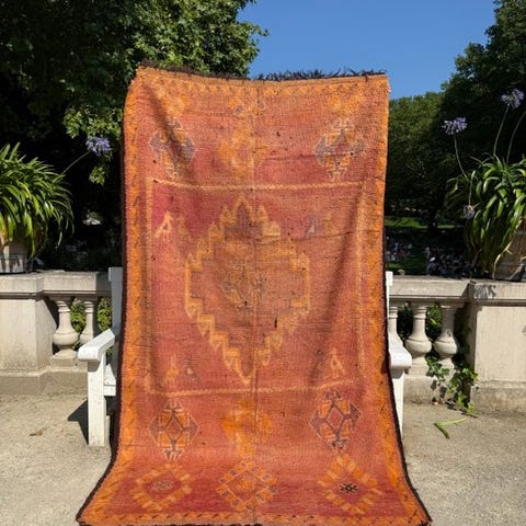 Tilfør dit hjem et strejf af autenticitet og karakter med dette smukke gamle berber-tæppe, helt håndvævet. Et ægte kunsthåndværk, der afspejler de marokkanske berberstammers forfædres håndværk.